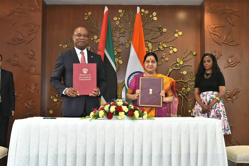 Minister of External Affairs Smt. Sushma Swaraj and Foreign Minister of Mozambique José Condungua Pacheco adopted the Agreed Minutes after the successful conclusion of the 4th Joint Commission Meeting, 28 November